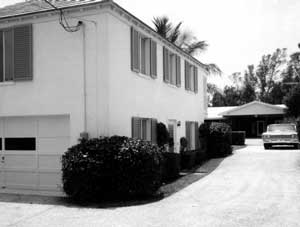 Left: The back of the house. Note that the driveway actually slopes upwards. This is unexceptional in most places but in flat South Florida it is worthy of note. Our street sloped upward from the ocean end to the lake end. The reality is that most of the “barrier islands” in South Florida are on top of a coral ridge, as opposed to being just sand spits. Much of Palm Beach is at least five metres above sea level, and it is the closest point on the U.S. coast to the Continental Shelf, which helps to mitigate storm surge. All of these make parts of Palm Beach a reasonable place to ride out a storm if you can stand the loss of power (ours was out four days after the first hurricane we went through.)