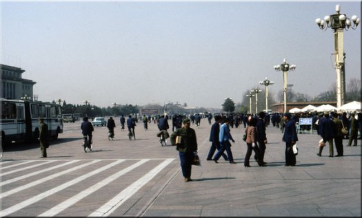 A view looking west on the Changan Avenue with the corner of the Great Hall of the People on the left. Beijing, China, 1981. Taken during the negotiations documented in A Fistful of Yuan.