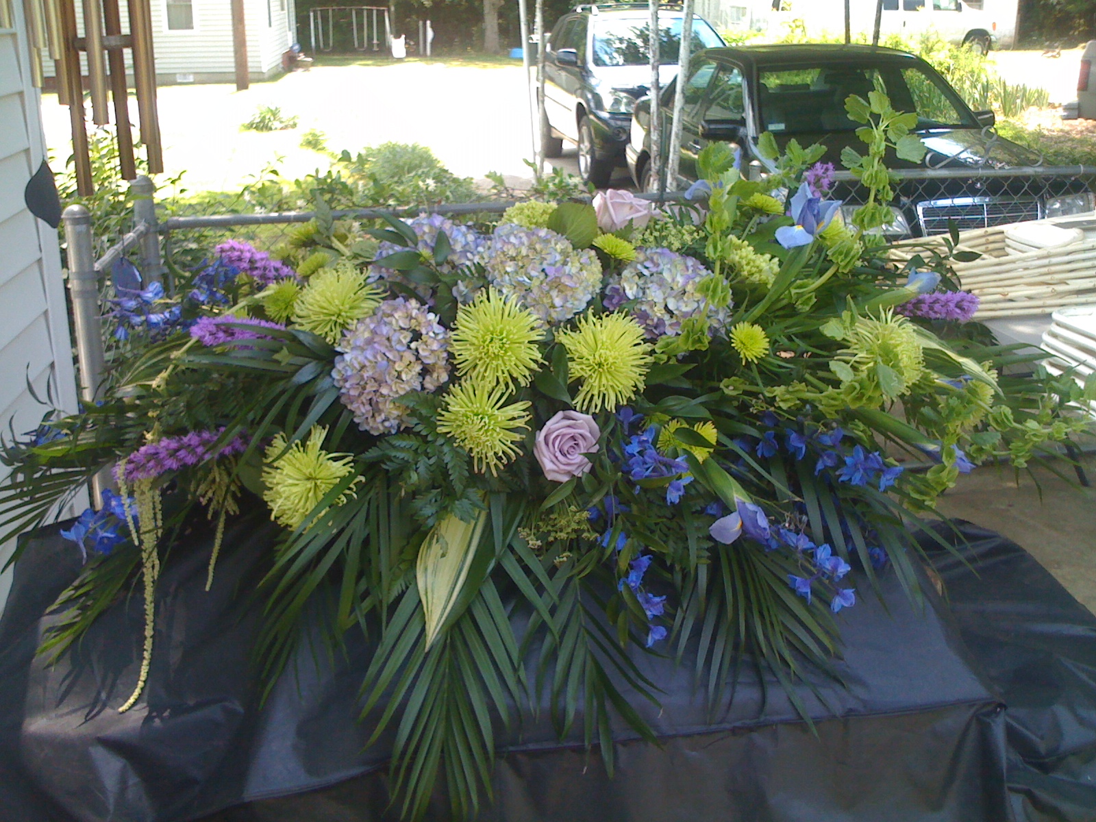 (That’s a barbecue grill under the casket spray.)