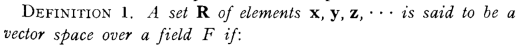 Well…we turn to the famous Russian mathematician Israel Gelfand’s Lectures on Linear Algebra (Dover Books on Mathematics), who at the start makes this definition: